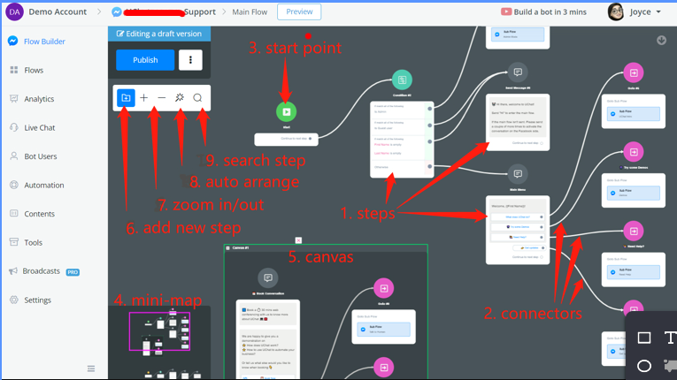 This section will give you an overall idea about how to use the GoChat flow builder. You can open a flow and try side by side when you learn it.