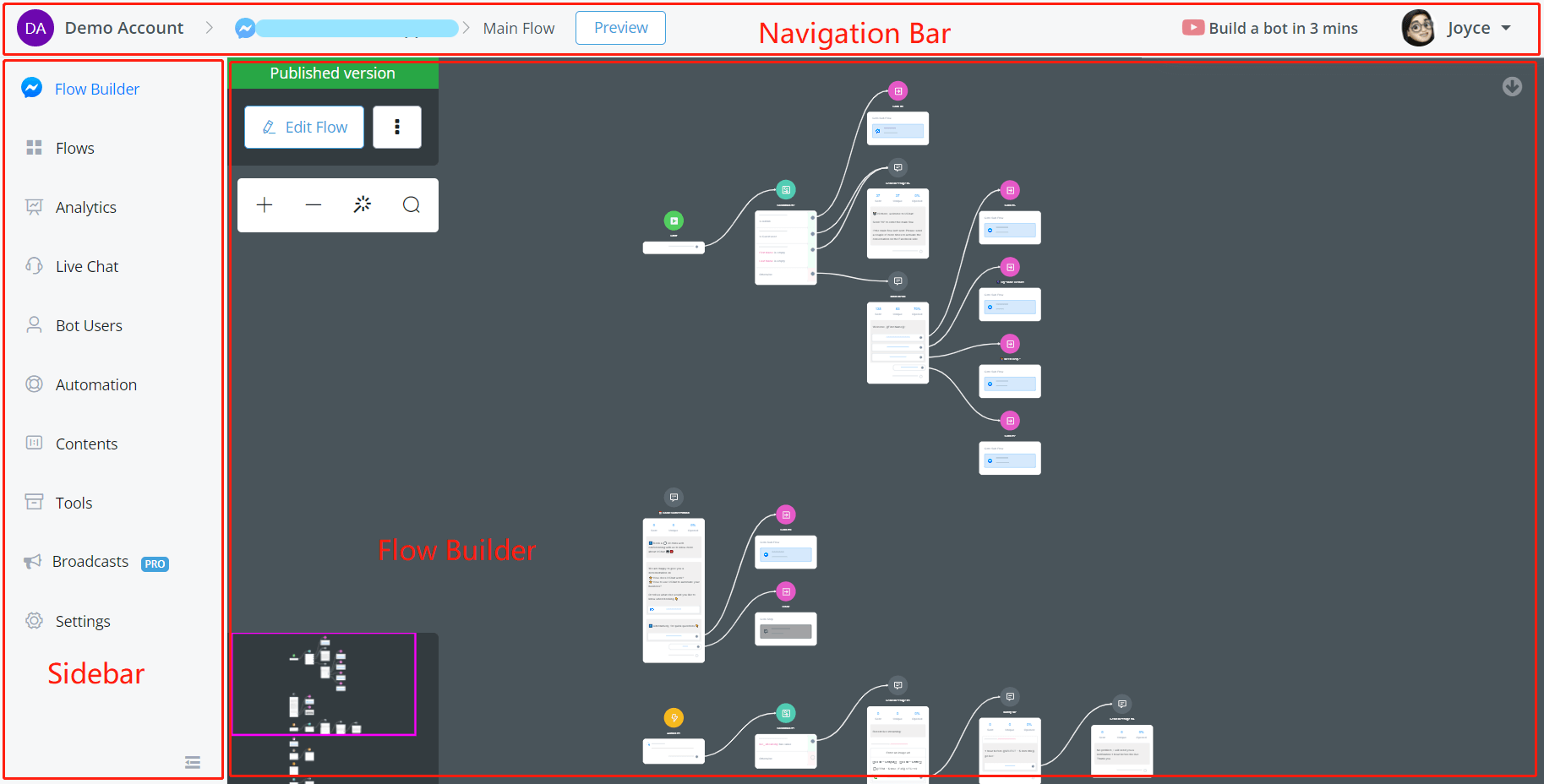 #### Navigation Bar, Sidebar & Flow Builder
